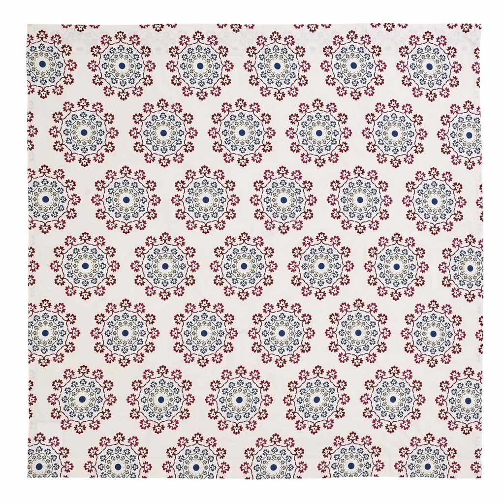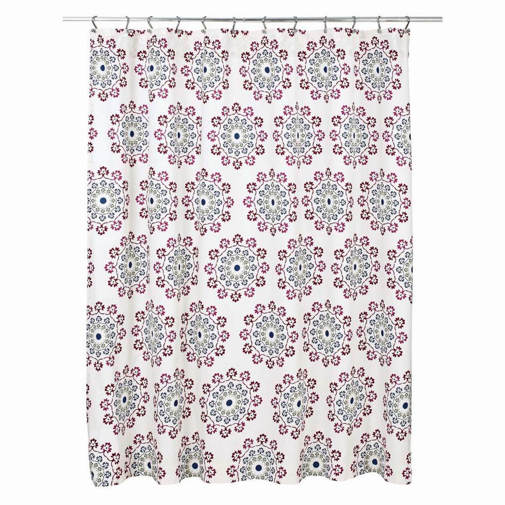 Create a fun, stylish look in your bathroom when you add this Antigua Shower Curtain to your decor. It measures 72x72" and comes unlined. The bright enlarged medallion print in magenta, bright lime, rose and blue topaz is placed on a creme cotton voile fabric to bring a touch of beauty to your bathroom. Use this shower curtain to bring simple, style and color to your decor.
