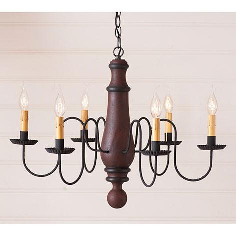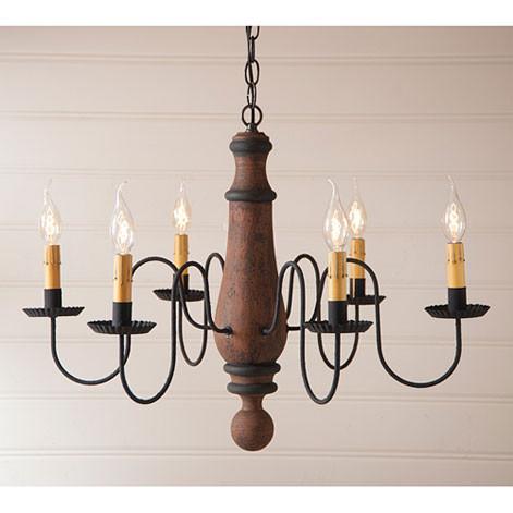 Bring classic style to your home by adding this Norfolk Large Hartford Series Wooden Chandelier to your home. It features simple but charming wooden body with black textured arms with crimped pans. It measures 20"H x 27.5"D. There are 6 candelabra sockets that offer 60 watts maximum per arm. This light accent comes with 7' of wire, 3' of chain, and a matching ceiling plate. This chandelier comes in 6 available colors. Choose from black over red, black with red stripe, red over black, red with black stripe, mustard over red, and pumpkin.
